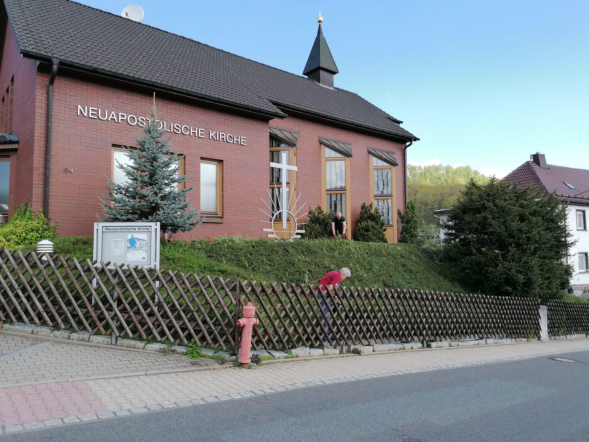 In diesem Jahr konnten wir nun wieder alle gemeinsam zusammenkommen und die Kirche und das Grundstück aus dem Winterschlaf erwecken. Insgesamt 20 Geschwister haben sich dazu versammelt. Dabei war jede Altersgruppe vertreten: vom 2 jährigen Kind bis zur Generation Ü70.