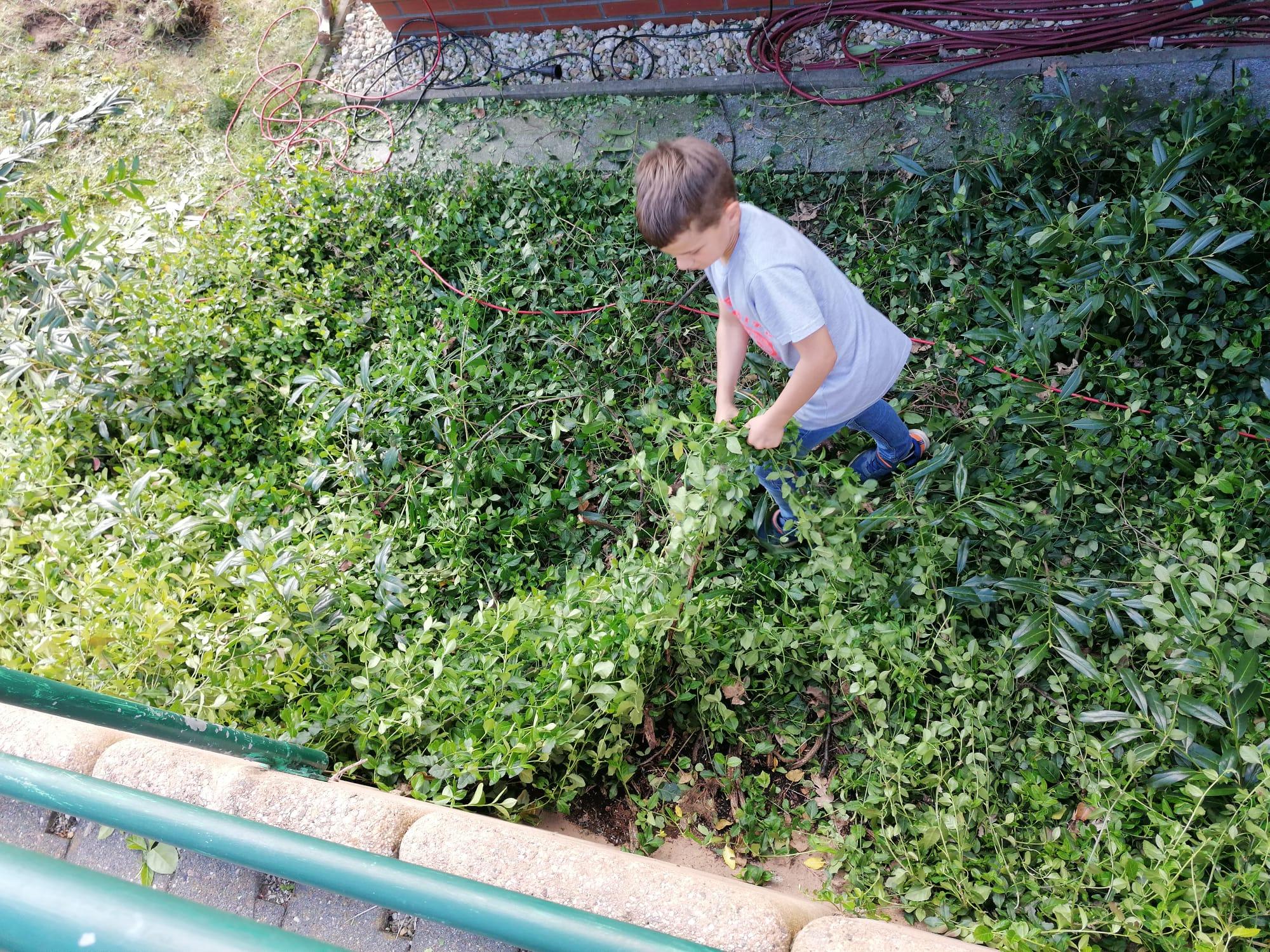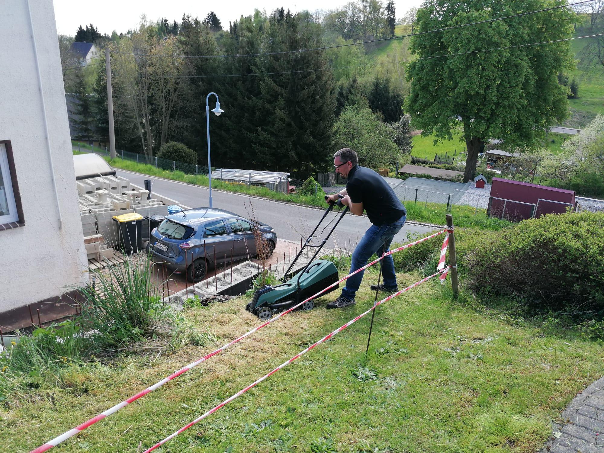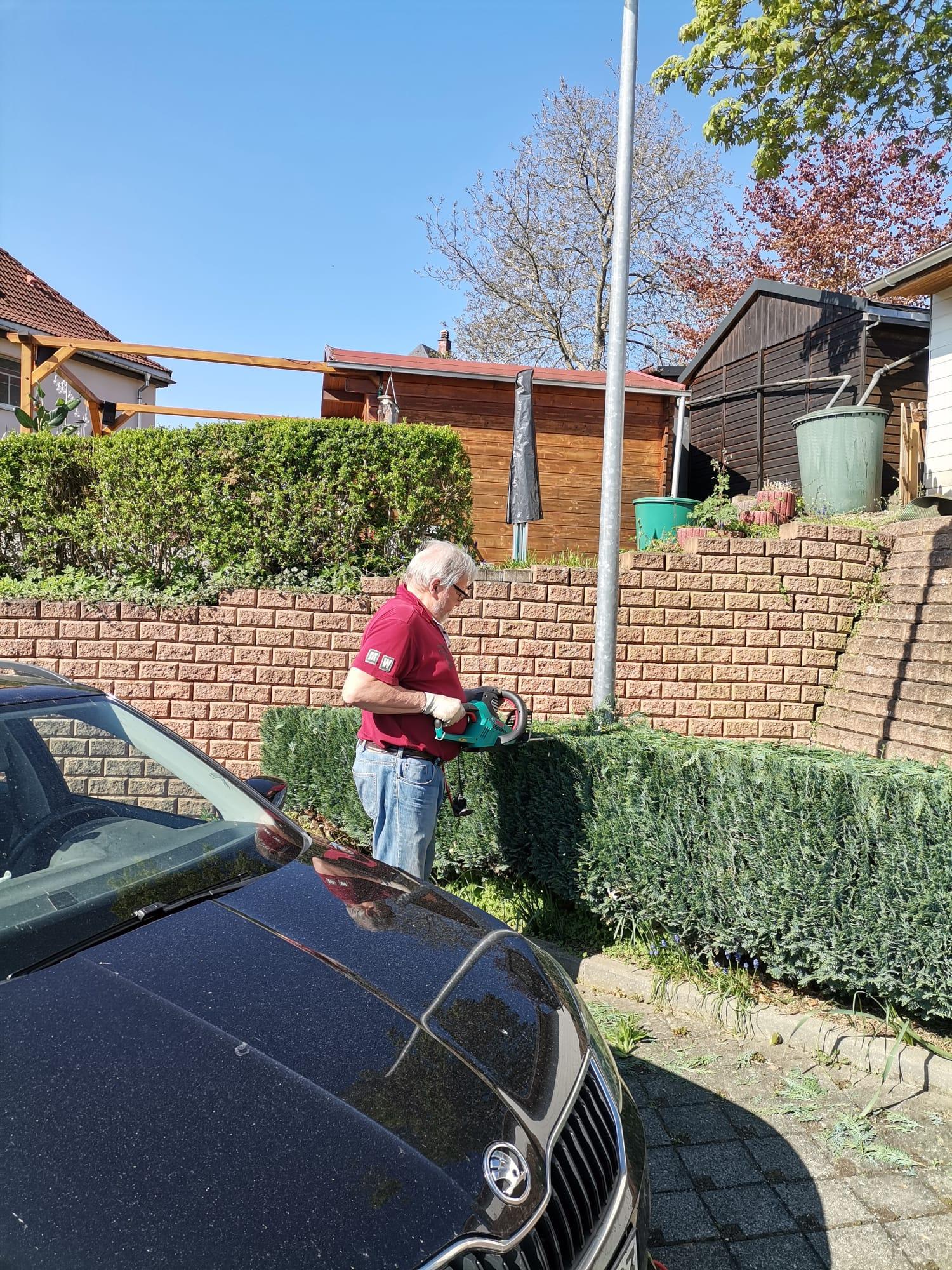 Im Außenbereich wurden Hecken verschnitten, Rasen gemäht, Unkraut gejätet sowie zwei Sträucher entfernt, um Platz für einen neuen Geräteschuppen zu schaffen. Dabei zeigte sich, dass einige Aufgaben nur im Team zu bewältigen waren. Das hat super funktioniert.