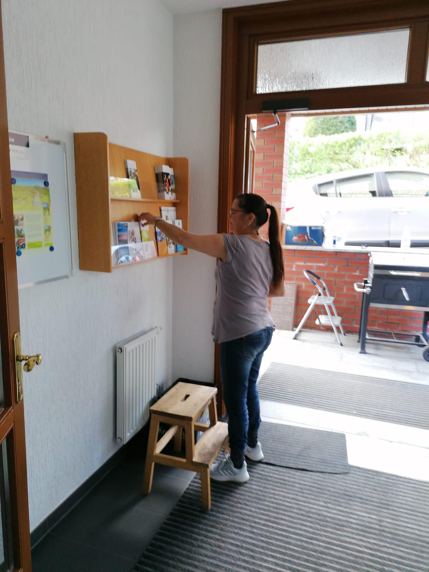 Nach kurzer Absprache waren die Aufgaben schnell verteilt. Während die Männer sich um die Außenanlage kümmerten, sorgten die Frauen für neuen Glanz im Kirchengebäude. So wurden sämtliche Räumlichkeiten gereinigt und neu sortiert. Außerdem gab es eine Komplettpflege für alle Stühle, Spiegel, Türen und Glasscheiben.