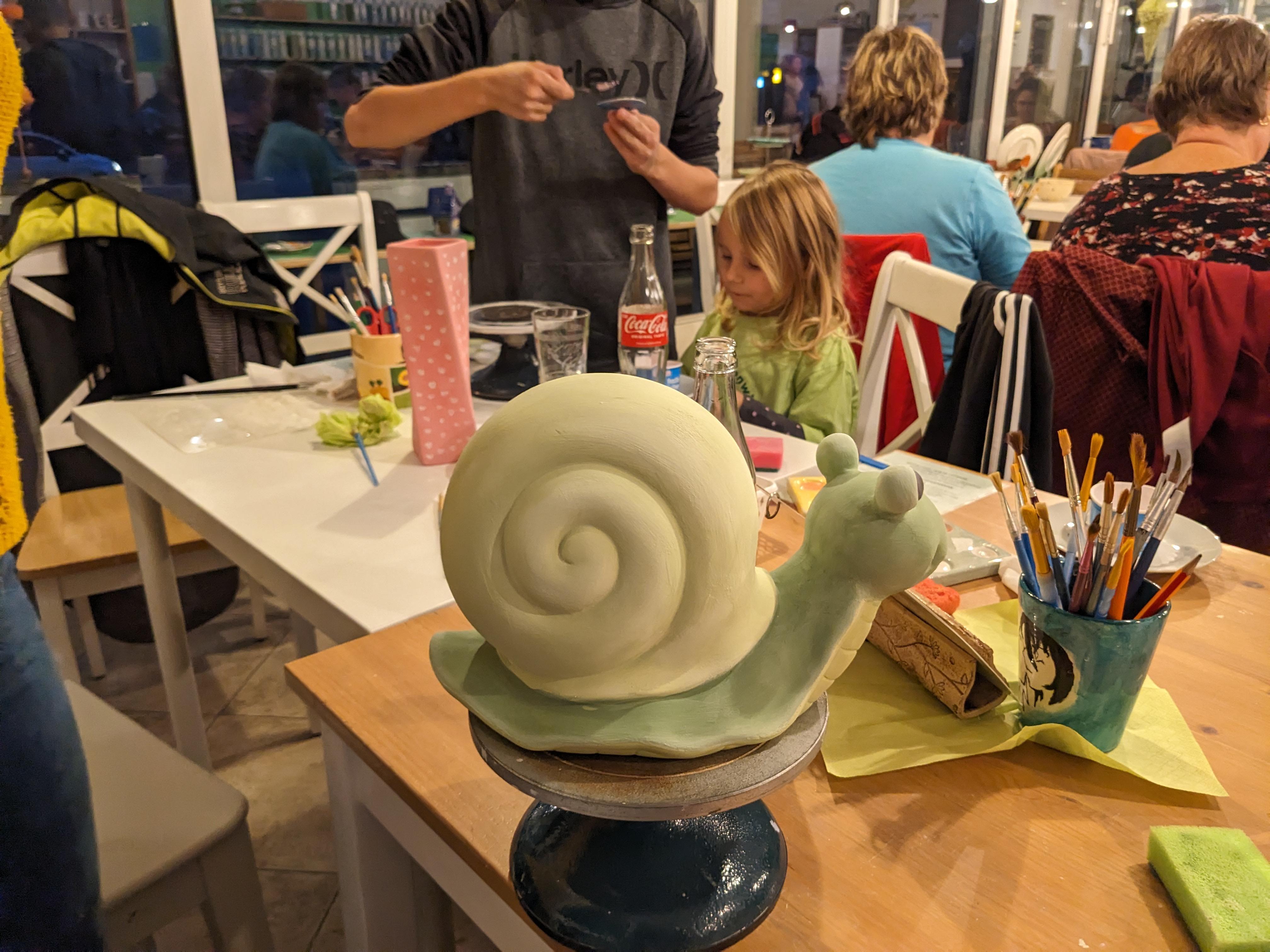 Zunächst hat sich jeder ein oder mehrere Modelle ausgesucht, die bearbeitet werden sollten. Dabei reichte die Angebotspalette vom kleinen Anhänger für eine Kette bis zur großen Aufbewahrungsdose für Kekse. Im nächsten Schritt musste man sich entscheiden, welche der unzähligen Farben verwendet werden sollten.