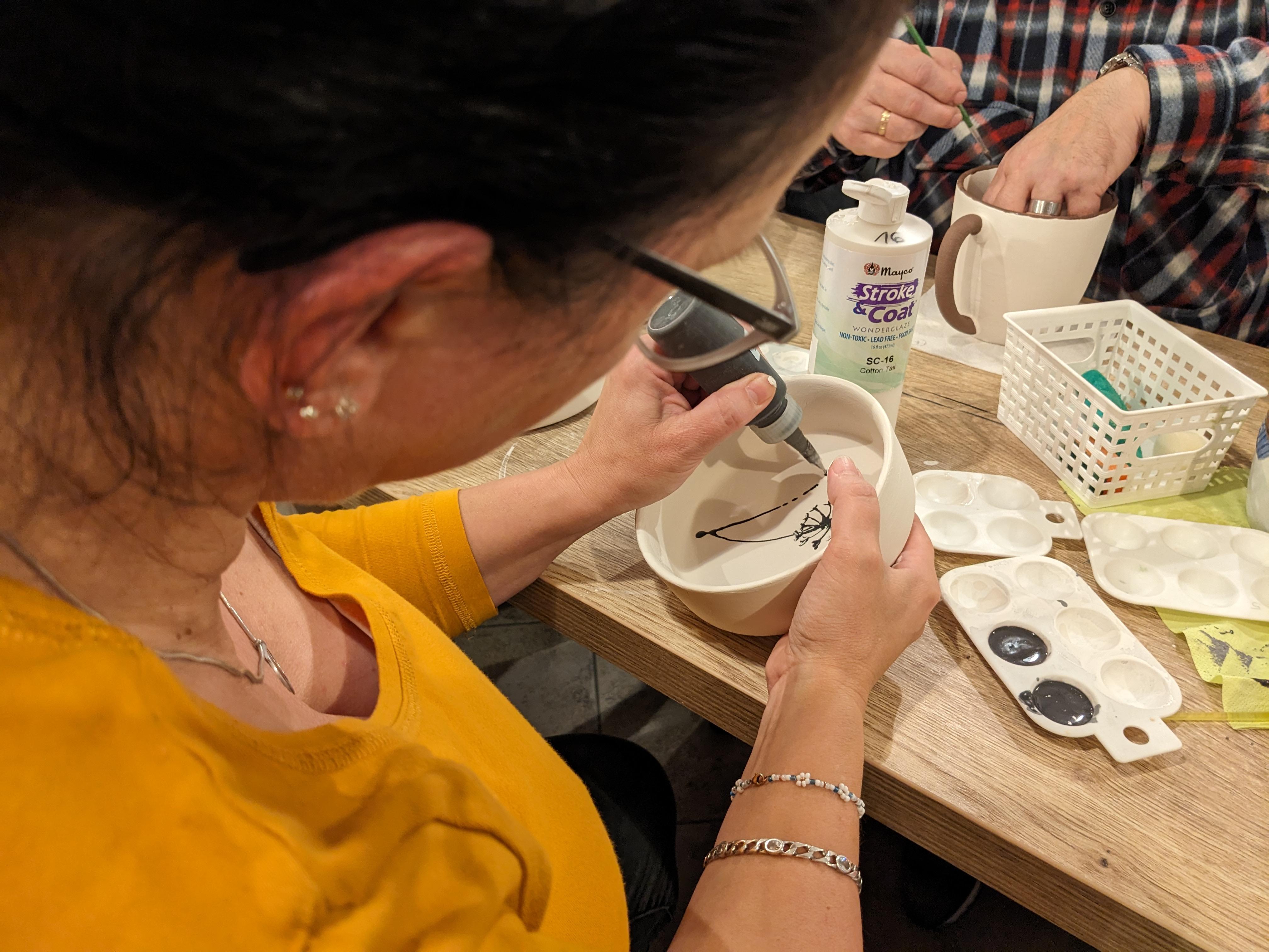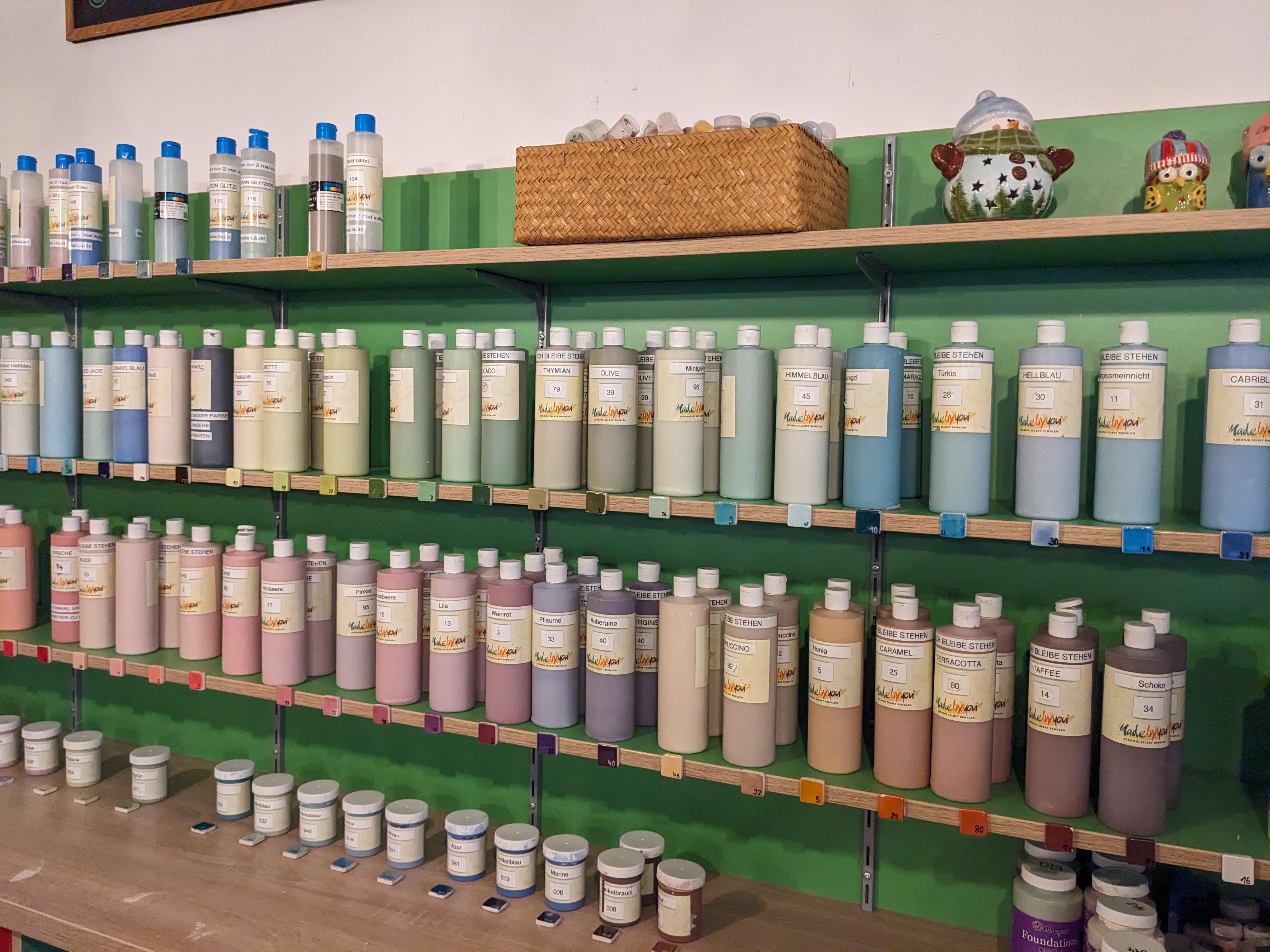 Zunächst hat sich jeder ein oder mehrere Modelle ausgesucht, die bearbeitet werden sollten. Dabei reichte die Angebotspalette vom kleinen Anhänger für eine Kette bis zur großen Aufbewahrungsdose für Kekse. Im nächsten Schritt musste man sich entscheiden, welche der unzähligen Farben verwendet werden sollten.